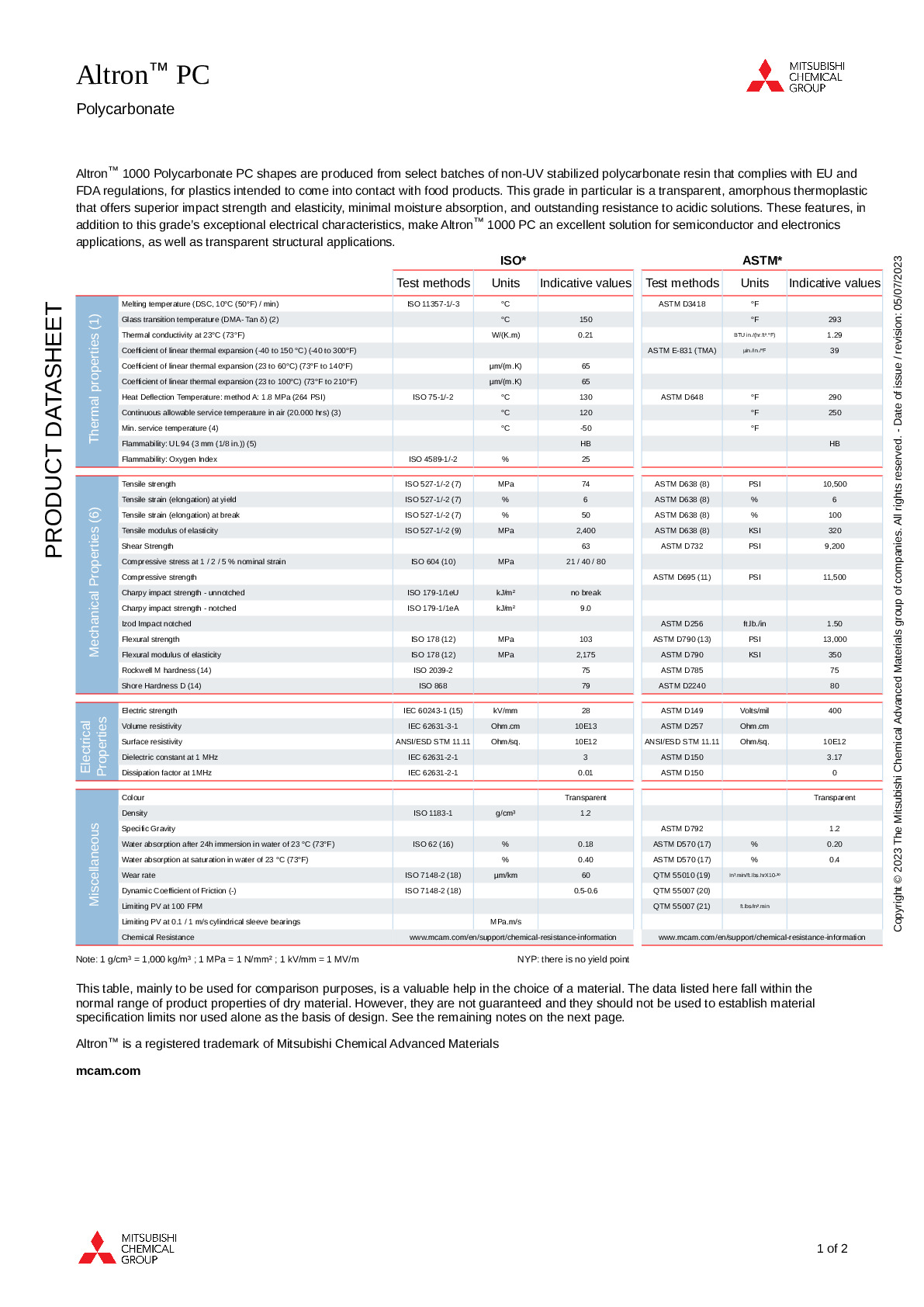 Mitsubishi Chemical Group's unmatched and ongoing investment in production and logistics sites solidifies the company’s commitment to world-class service, quality and market development for engineering plastics. MCG's range of process technology includes casting, extrusion, and compression molding—delivering the widest range of engineering plastic materials to the market.