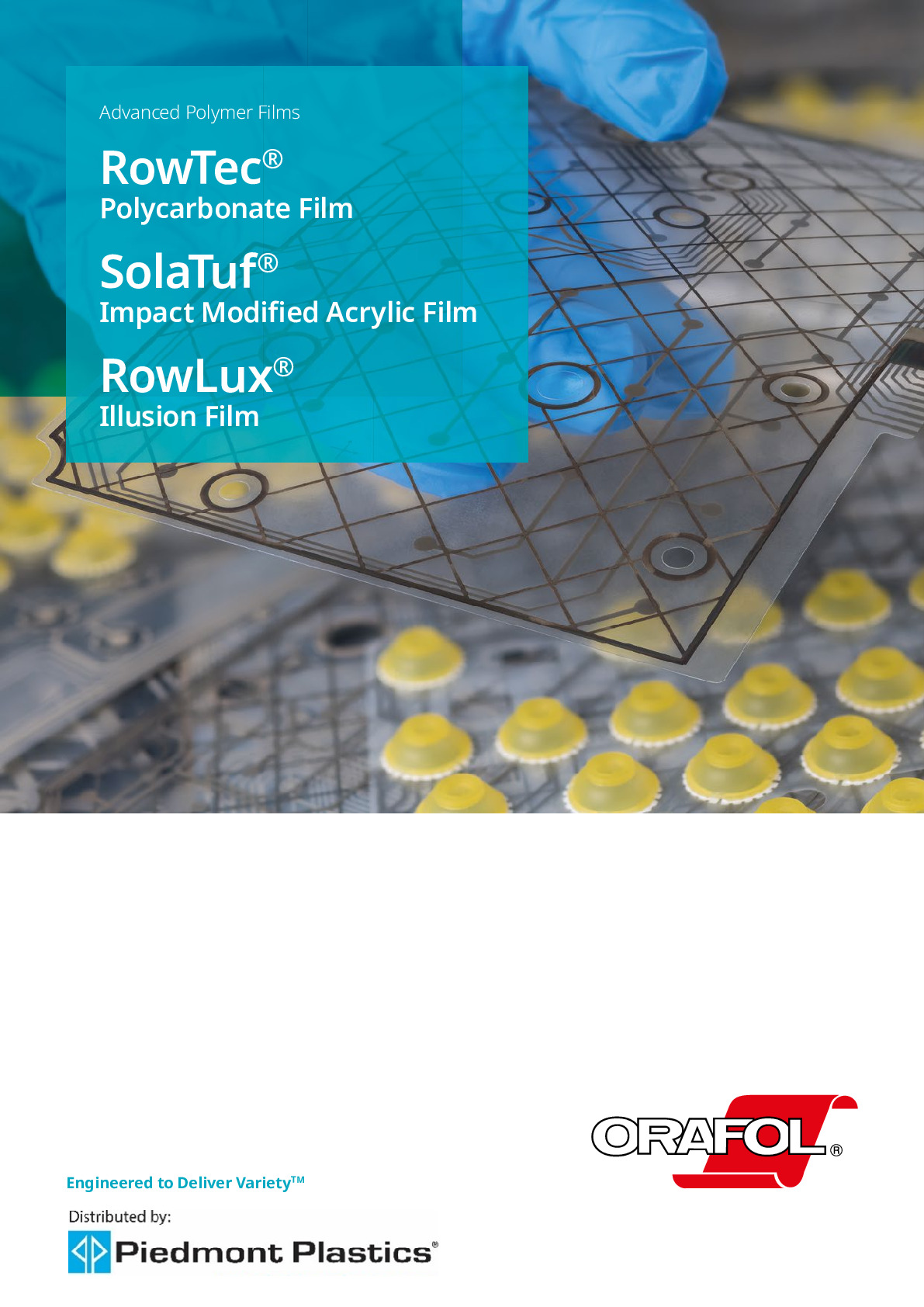 ORAFOL's diverse portfolio of high-performance products, which include RowTec® polycarbonate film, SolaTuf® impact-modified acrylic film, and Rowlux® illusion film deliver the consistency and reliability demanded by today's exacting standards. From graphic arts materials to medical packaging, and from aerospace applications to automotive parts, ORAFOLS's materials give customers assurance of quality.