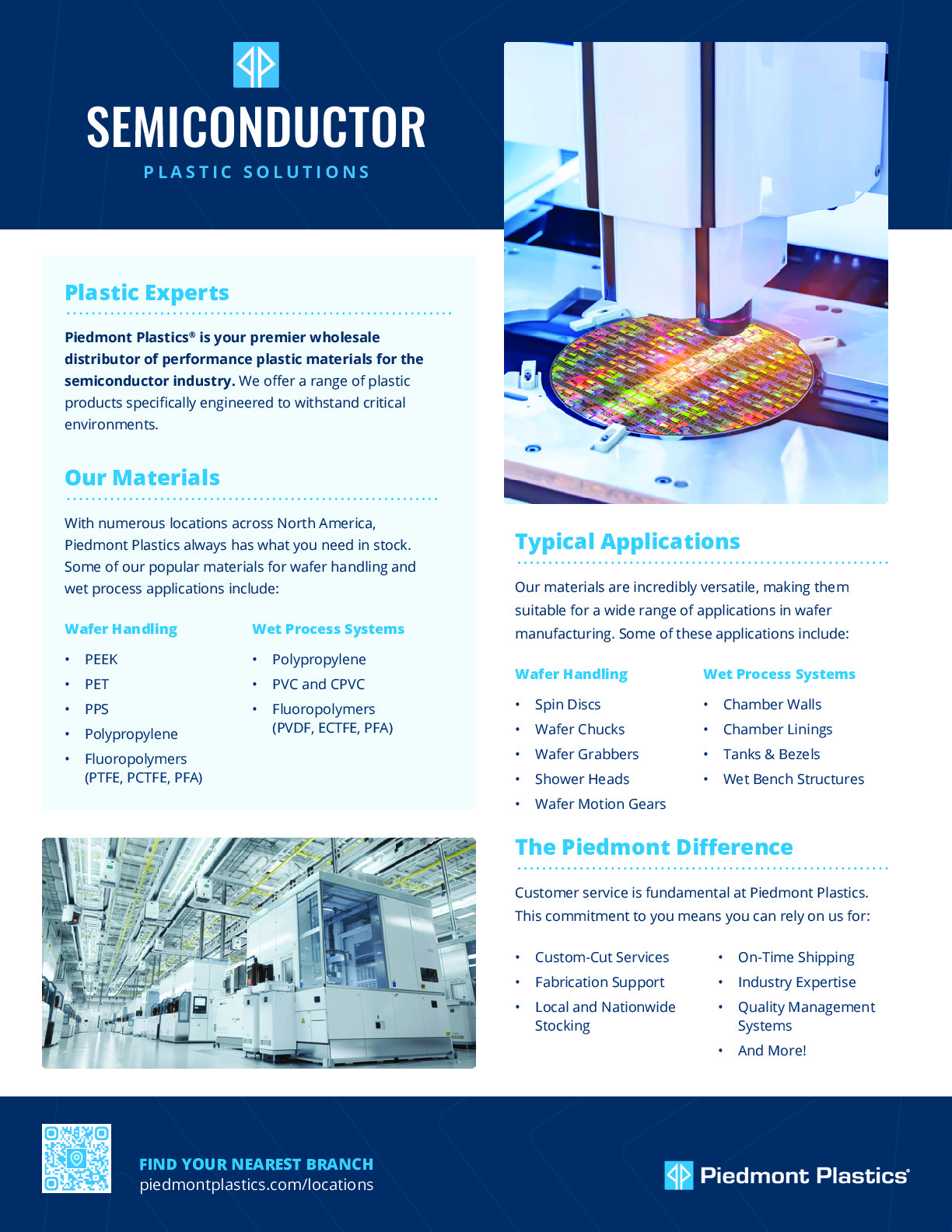 Piedmont Plastics stocks a variety of PEEK and Semitron® products engineered to optimize the precision performance of device manufacturing equipment. Our knowledgeable representatives will guide you in selecting the best materials for your semiconductor industry needs.